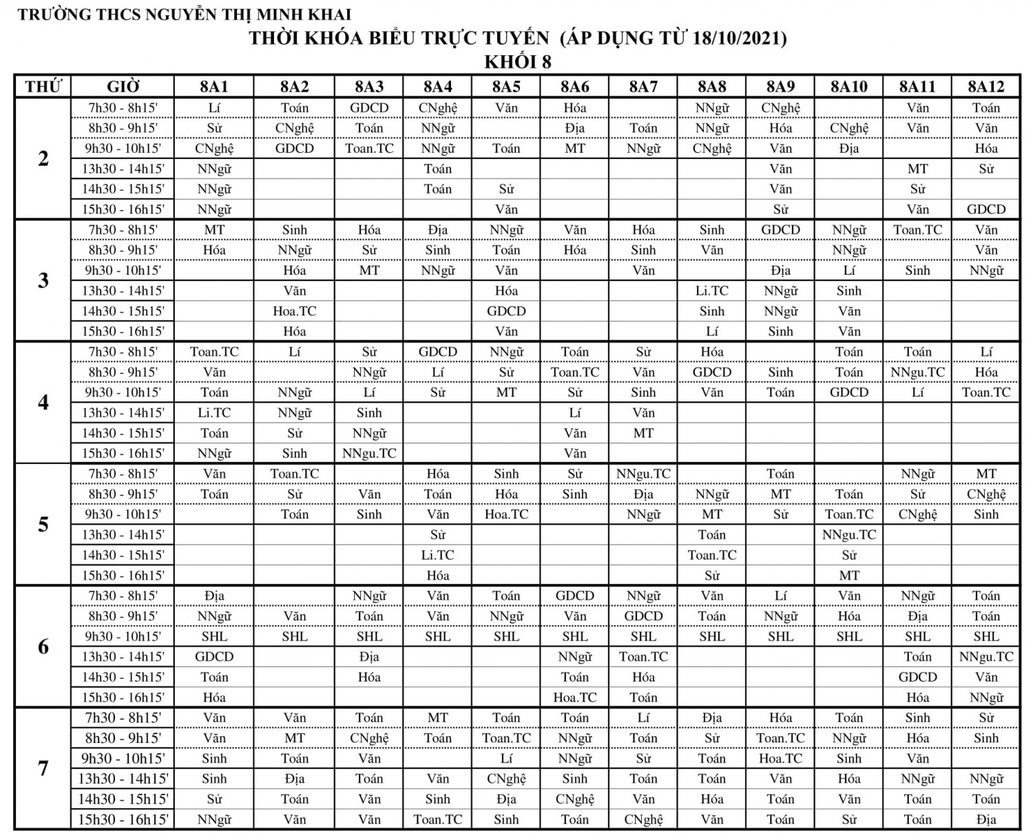 Thời khóa biểu khối 8 (Áp dụng từ 18/10/2021)